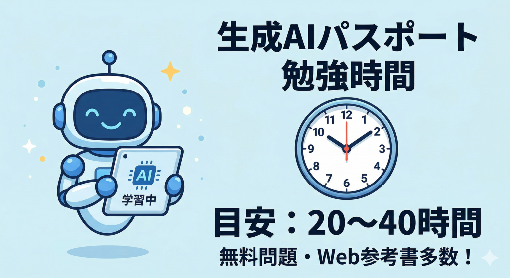 これから生成AIパスポートの受験を考えている方にとって、学習時間の目安は最も気になるポイントですよね。
