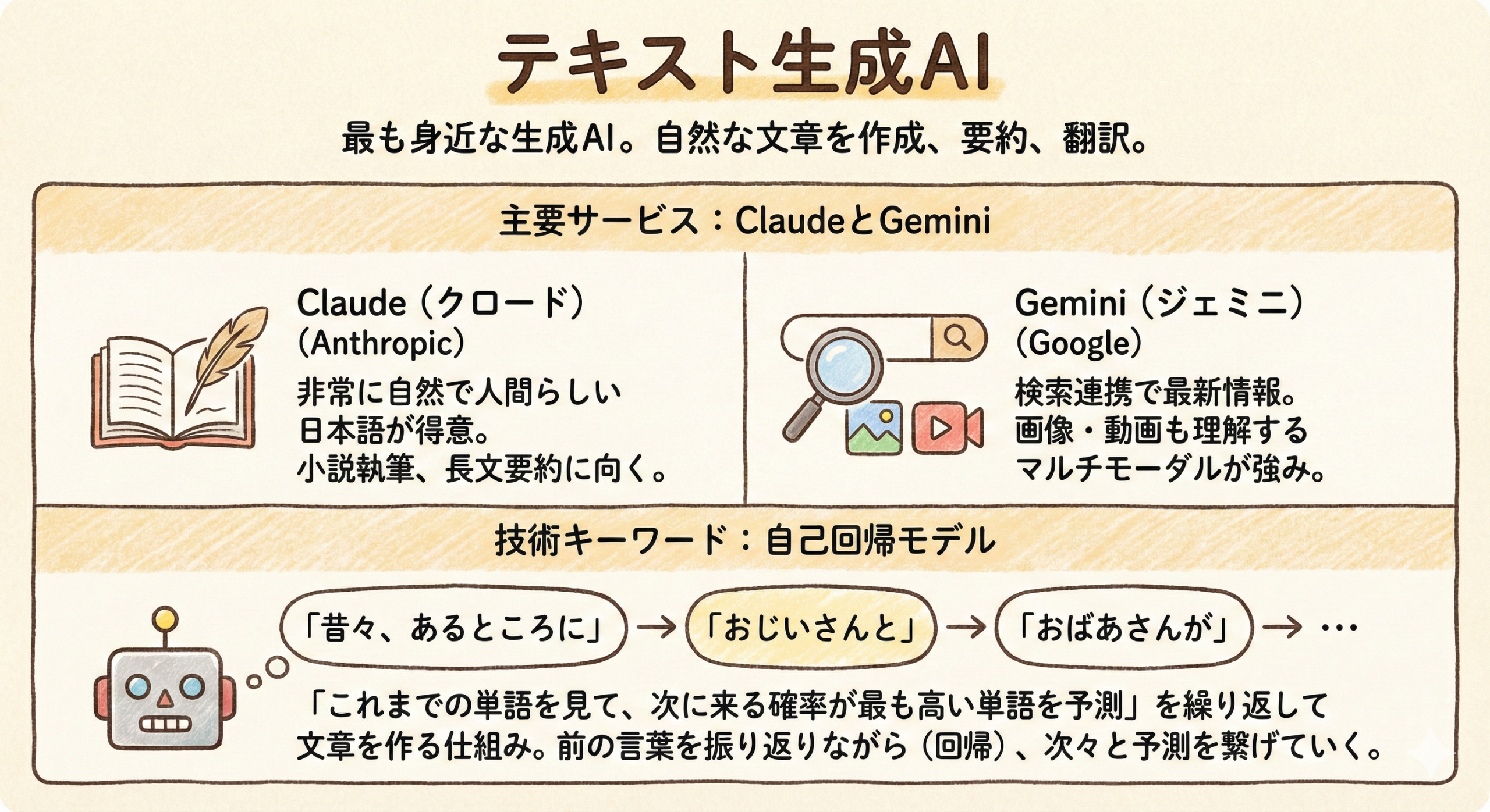 リマスタリング技術の理解 問題 生成AIを用いた「リマスタリング」技術の説明として正しいものを1つ選べ。 1. テキストの指示だけで完全に新しい実写動画を生成する技術。 2. 音声をテキストに変換してノイズを取り除く技術。 3. 手持ちの画像を回転や反転させて学習データを増やす技術。 4. 古い映画や低画質の写真をAIを使って高画質に修復する技術。 この問題の関連テキスト 生成AIが出来ることと主なサービス Web教科書で詳しく学ぶ » ← 前の問題 次の問題 → おすすめ記事生成AIパスポートの次はどれを目指す?ネクストステップにおすすめの資格3選と選び方 同じカテゴリの問題 テキスト生成AIの仕組み テキスト生成AIの主要サービス 画像生成AIのデータ処理 ● リマスタリング技術の理解 (表示中) 動画生成AIの主要モデル ディープフェイクの定義 偽情報と誤情報の違い ディープフェイクの悪用事例 RAGの基本的な仕組み RAGの導入メリット チャンクの役割 ベクトルデータベースの特徴 RAGとファインチューニングの違い RAGの歴史 AIエージェントと従来のAIの違い AIエージェントの処理サイクル GenSparkの特徴 Manusの特徴 Skywork AIの特徴 MCPの役割 カテゴリを選択する 他のカテゴリを選択する