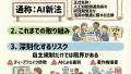 - 企業はリスクを分析し、AIガバナンス(管理体制)を構築する必要がある。